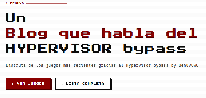 Buenas. Una pregunta ¿Este juego utiliza el famoso hypervisor? Es que veo en otros lugares este mismo juego, pero utilizando el truco del hypervisor para poder eludir Denuvo.